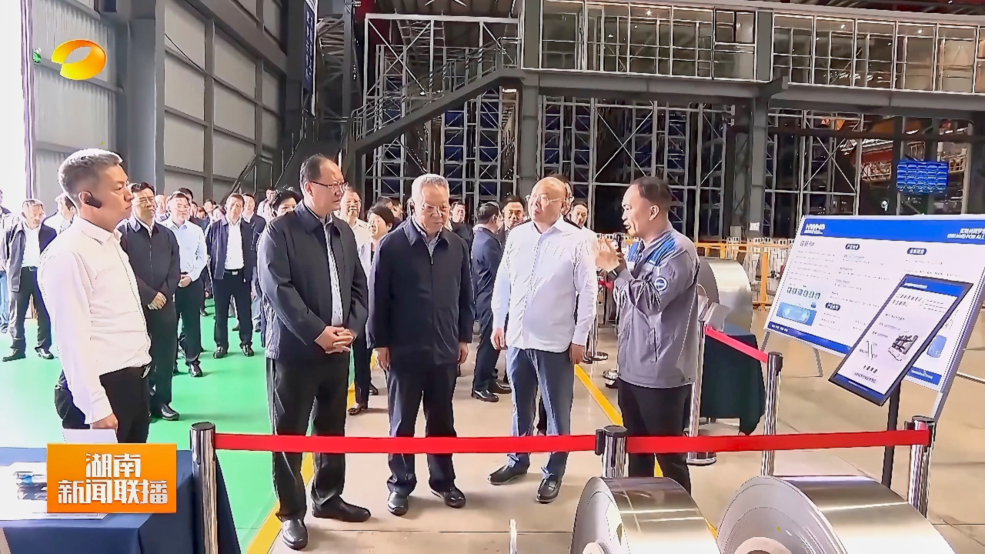 观摩团一行深入车间,现场观摩硅钢的生产工艺流程,边走边看,不时驻足,与集团领导深入交流,仔细询问产品性能、智能制造和终端应用等方面情况。集团董事长、总裁戴促辉详细介绍了集团在娄底的投资布局、技术研发、市场销售以及发展规划等。