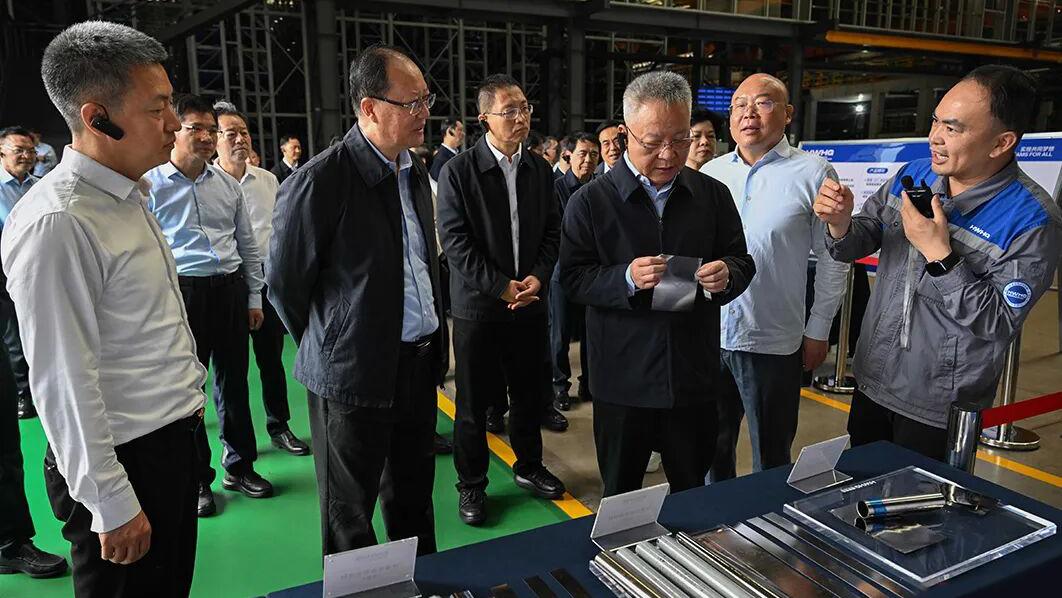 10月16日,湖南省委财经委员会在娄底召开产业链延链补链强链现场观摩会,省委书记沈晓明,省委副书记、省长毛伟明,省委副书记、岳阳市委书记谢卫江等领导一行莅临湖南宏旺现场观摩,实地调研公司生产经营、科技创新及产业链发展情况。娄底市委书记曾超群,宏旺控股集团董事长、总裁戴促辉,宏旺控股集团副总裁、湖南宏旺执行董事刘慧丹现场汇报。